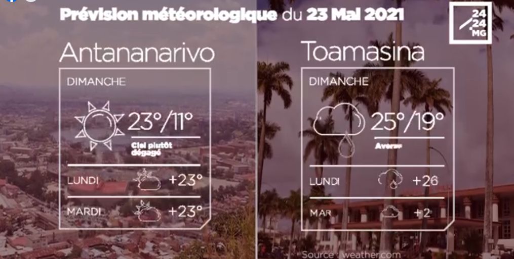 Les prévisions météorologiques des grandes villes de Madagascar pour la journée du 23 mai.