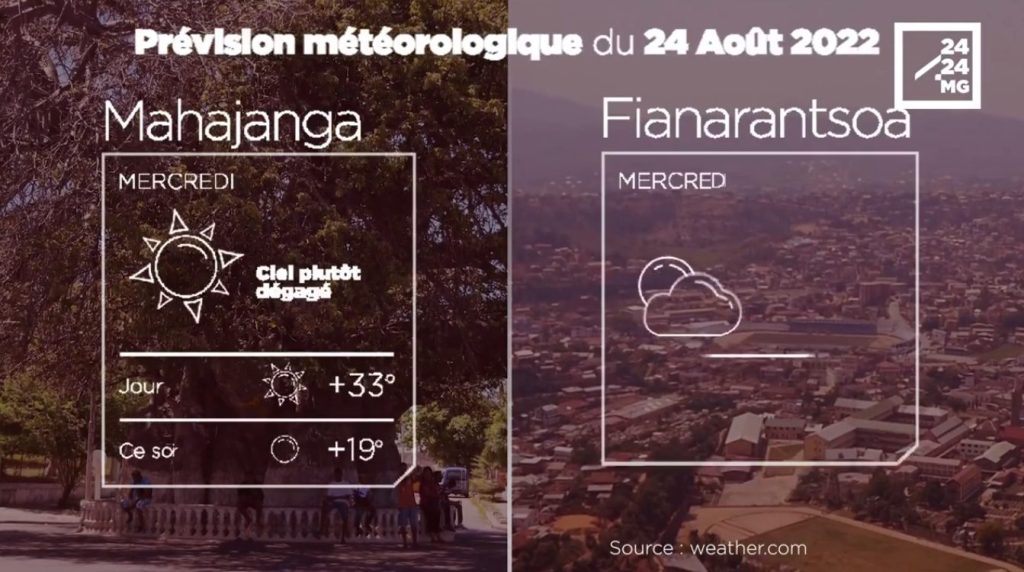 Les prévisions météorologiques des grandes villes de Madagascar pour la journée du 24 août.