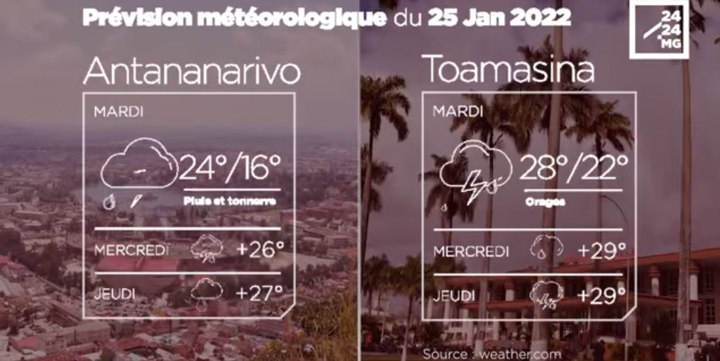 Les prévisions météorologiques des grandes villes de Madagascar pour la journée du 25 janvier.