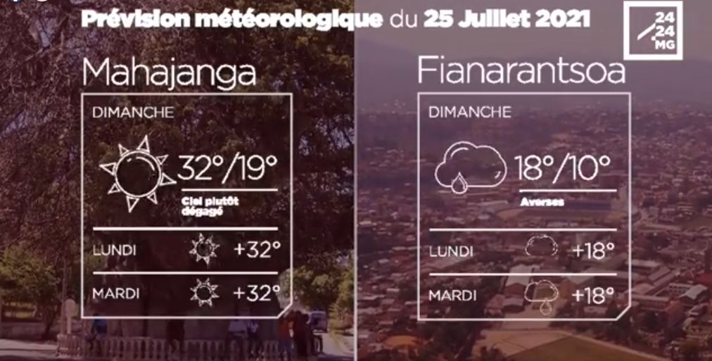 Les prévisions météorologiques des grandes villes de Madagascar pour la journée du 25 juillet.