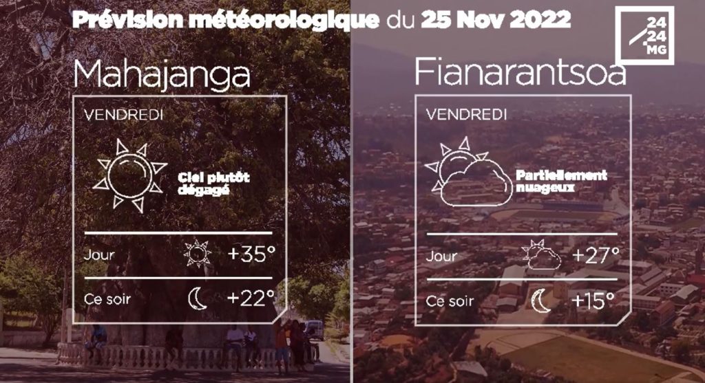 Les prévisions météorologiques des grandes villes de Madagascar pour la journée du 25 novembre.