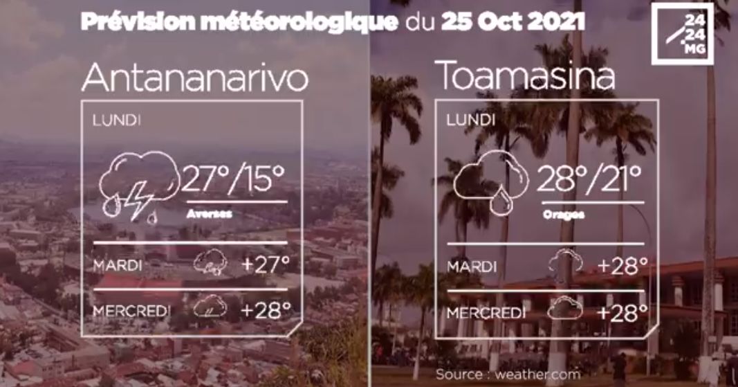 Les prévisions météorologiques des grandes villes de Madagascar pour la journée du 25 octobre.