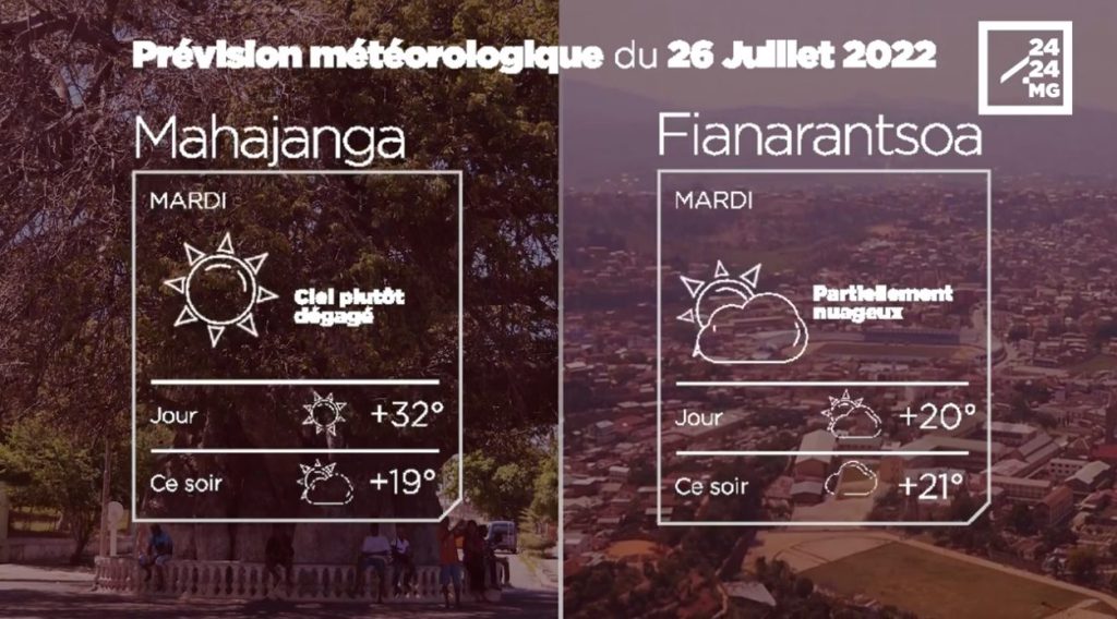 Les prévisions météorologiques des grandes villes de Madagascar pour la journée du 26 juillet.