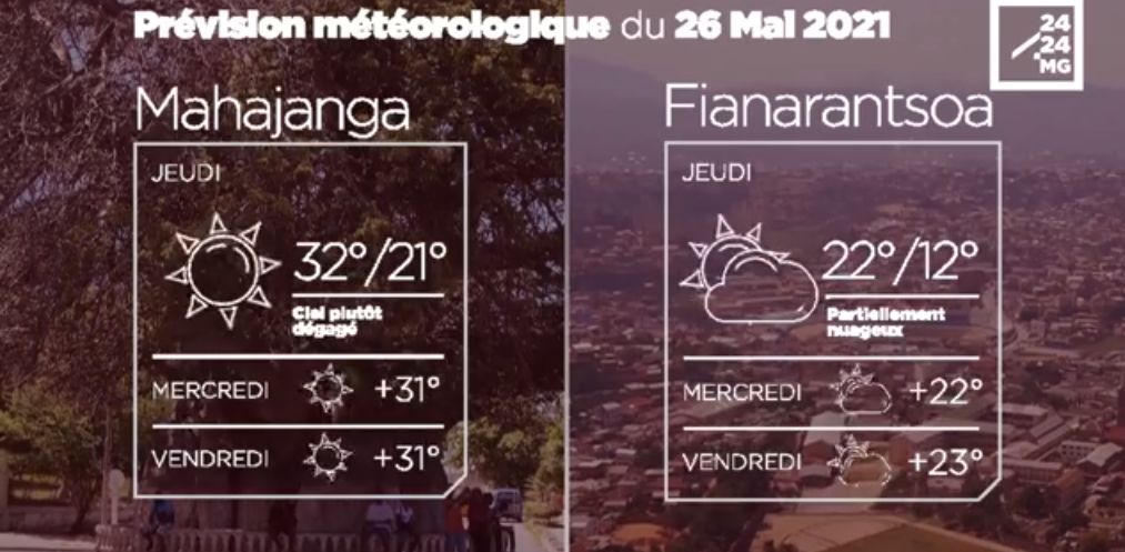 Les prévisions météorologiques des grandes villes de Madagascar pour la journée du 26 mai.