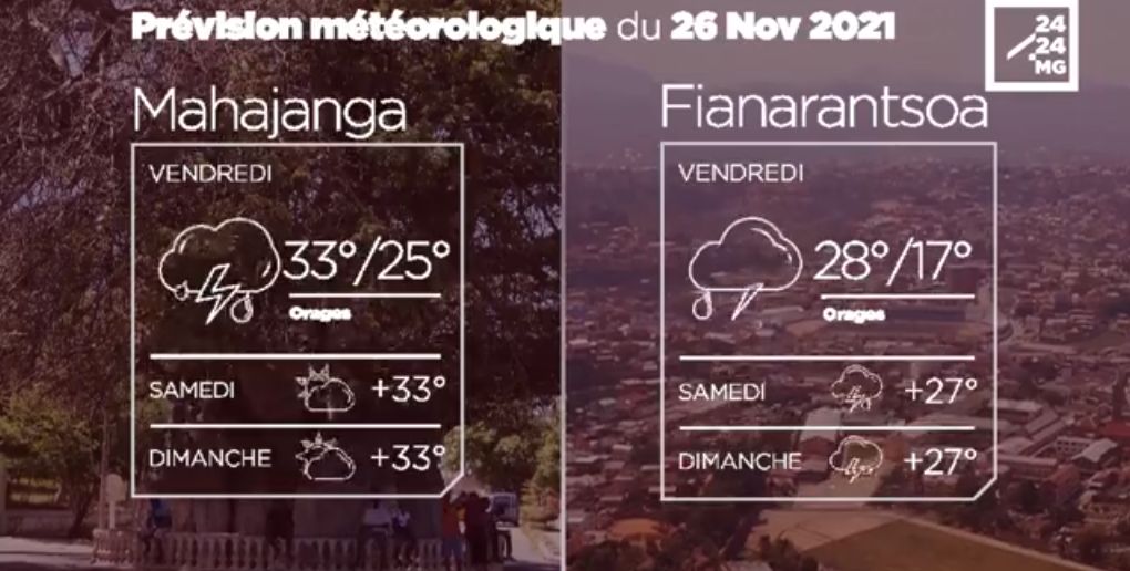 Les prévisions météorologiques des grandes villes de Madagascar pour la journée du 26 novembre.
