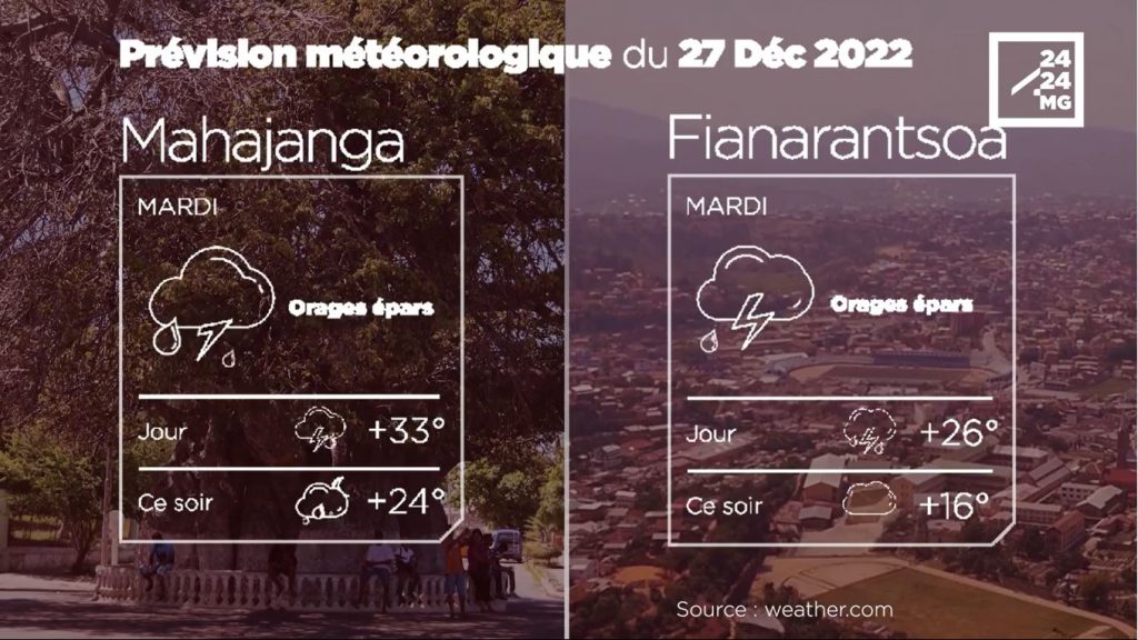 Les prévisions météorologiques des grandes villes de Madagascar pour la journée du 27 décembre.