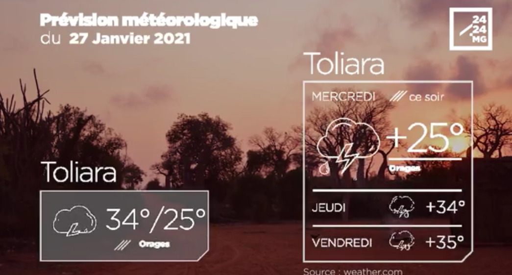 Les prévisions météorologiques des grandes villes de Madagascar pour la journée du 27 janvier.