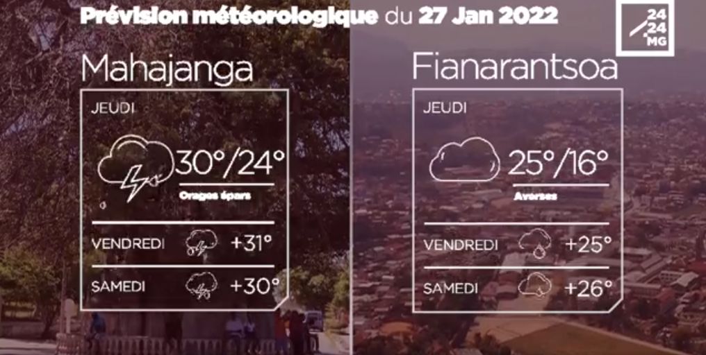 Les prévisions météorologiques des grandes villes de Madagascar pour la journée du 27 janvier.