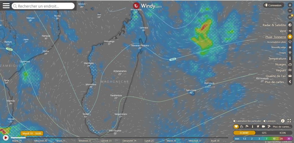 Antananarivo, 19 Avril, 16h25 – Alerte verte pour la région de Diana. Elle est plutôt jaune pour les régions de la Sava et d’Analanjirofo ainsi que pour les districts de Toamasina I et II. Selon les prévisions des services de la météorologie, les activités quotidiennes dans ces régions du pays pourraient être perturbées par des fortes pluies à partir de mercredi et jusqu’à vendredi.
