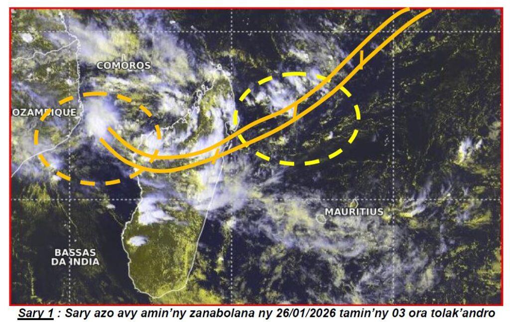 Madagascar entre deux zones orageuses actives. La Zone de convergence intertropicale (ZCIT) continue d’influencer le temps à Madagascar, avec une activité orageuse marquée sur la partie nord de l’île. Selon les derniers bulletins des services météorologiques publiés lundi dans la soirée, deux zones perturbées font actuellement l’objet d’une surveillance accrue. L’une dans le canal du Mozambique, l’autre à l’Est de la région Sava.
