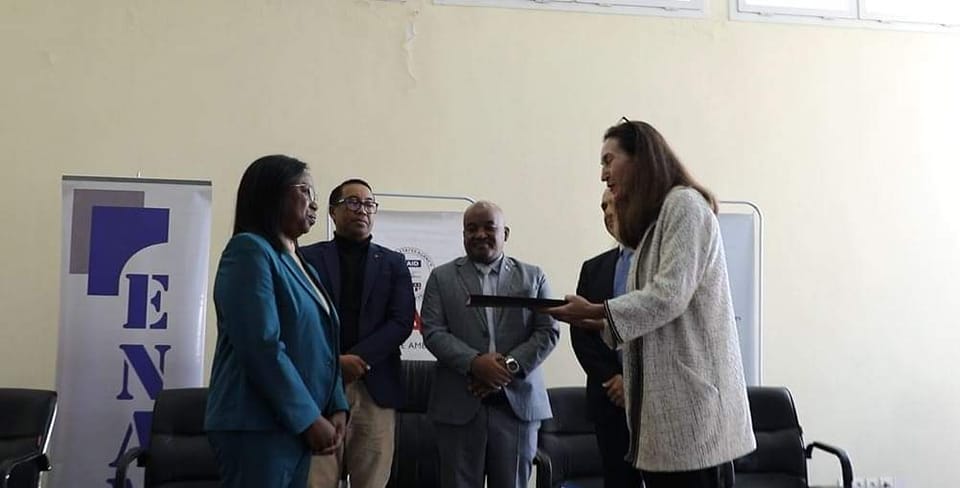 ⭕« A travers ce partenariat l’Usaid et le Pnud à travers le Programme Rindra visent à améliorer l’efficacité de l’administration publique et leurs services vis-à-vis des citoyens. Cette initiative contribuera à créer un environnement propice à une gouvernance responsable et transparente. », indique un communiqué de l’Enam. Outre le don d’équipements, le partenariat consiste également à apporter une révision sur les modules de formation proposés par l’Enam. Il s’agit des programmes de renforcement de capacité, à destination des agents des communes, développés et menés par l’Enam. « Ces programmes porteront sur les thématiques de leadership et développement local, des rôles des représentants de l’État dans la promotion de la croissance économique, la décentralisation et la promotion de la politique de la décentralisation, ainsi que la gestion d’investissement publique. Ils bénéficieront aux cinq régions, dans les zones d’interventions du programme Rindra», à en croire un communiqué de l’Enam.