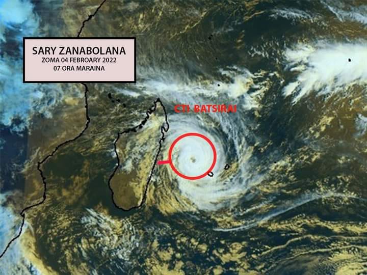 Ce vendredi à 6h, le cyclone tropical intense Batsirai se trouvait à 514 km/h à l’Est de Vatomandry. Il se déplace vers l’Ouest à une vitesse de 15km/h avec des vents moyens de 175km/h et des rafales de 250km/h. Il est prévu toucher terre sur la Grand île ce samedi entre 9h et 14h. Le point d’impact prévu se trouve entre Vatomandry et Mananjary.