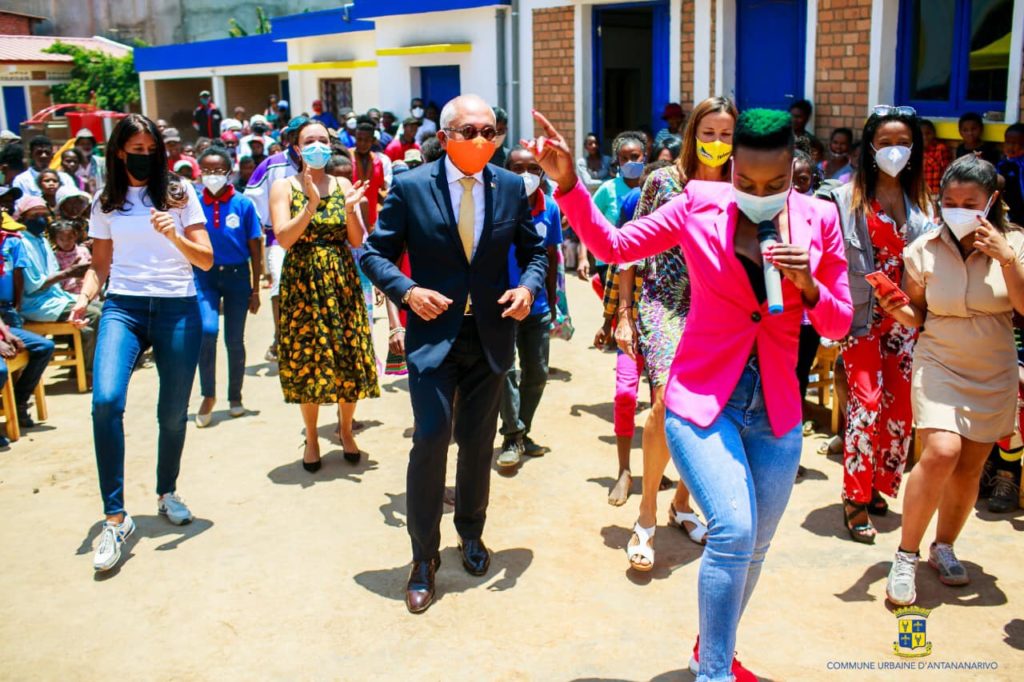 Antananarivo, 23 Novembre, 18h23 – L’artiste sud-africaine Nomcembo Zikoda a accompagné le maire d’Antananarivo au centre social « Akany Iarivo Mivoy », centre d’accueil des sans-abris de la Commune urbaine d’Antananarivo, ce lundi. L’occasion pour la star d’esquisser quelques pas de danse avec Naina Andriantsitohaina et les VIP qui ont fait partie de la délégation.