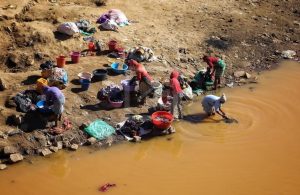 Le lit de l’Ikopa a beau être à sec, elles sont là pour faire leur lessive. L’eau ne coule plus sous le pont, mais il reste encore ici et là des flaques qui pourront toujours faire leur affaire de lavandière.