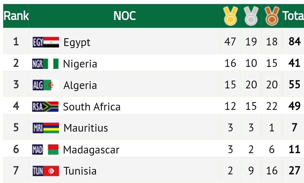 Antananarivo, 12 Mars, 6h30 – Aux Jeux africains, Madagascar reste provisoirement à la sixième place au tableau des médailles avec trois médailles d’or, deux médailles d’argent et six médailles de bronze, soit un total de 11 médailles à l’issue de la huitième journée de compétition.