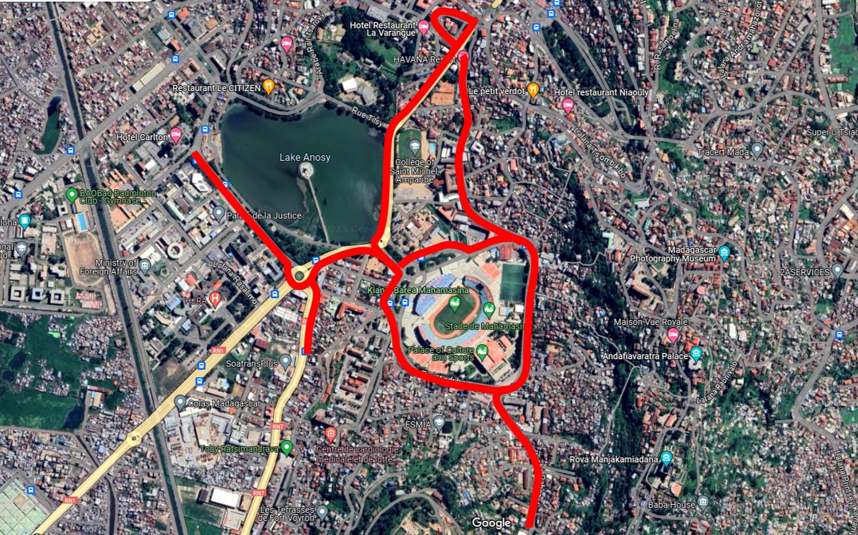 ⭕Selon une note préfectorale partagée par la Commune urbaine d’Antananarivo, toutes les rues qui entourent le stade seront déjà interdites à la circulation. Mais les rues qui mènent vers le stade Barea de Mahamasina, seront également coupées. Ce sera le cas de la rue Jean Ralaimongo, qui part du tunnel d’Ambohidahy, et évidement de la rue Mohammed V. Idem pour la rue Rabobalahy qui relie la Haute cour constitutionnelle à la Pergola, ou encore la rue Rakotondratandra qui passe va d’Amparibe au tunnel d’Ambohidahy. La rue Ranaivo Jules, entre l’hôtel Carlton et le Sénat, la portion de la route nationale 7 allant d’Anosy jusqu’à la station Galana d’Andrefan’Ambohijanahary, ainsi que la rue Rabozaka partant du Collège de France d’Ankadilalana vers Mahamasina seront également interdites à la circulation.