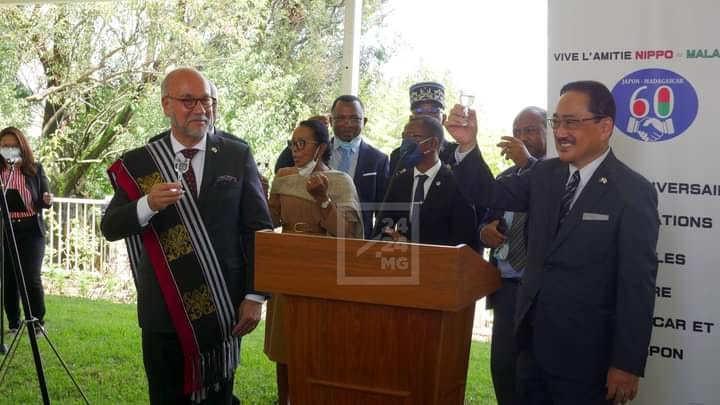 ⭕Le gouvernement malgache a été représenté par ses chefs d’Institution et des membres du gouvernement à la célébration de ce lundi. Dans son discours, Patrick Rajoelina, ministre des Affaires étrangères a affirmé se réjouir « du dynamisme des relations nippo-malgaches » au cours des dernières années, notamment par la présence de l’Empire du Soleil levant aux côtés de Madagascar durant les différentes épreuves qu’a traversé le pays, notamment le kere ou encore la pandémie de la Covid-19. Le Japon est mentionné comme « fidèle partenaire » dans l’appui de Madagascar pour sa relance économique.