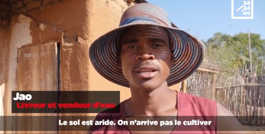 Jao Hety vend et livre de l’eau en bidon à Ampanihy. C’est le seul métier trouvé par cet ancien agriculteur chassé de ses terres par la sécheresse qui sévit dans la région. Un métier qui rapporte peu mais qui lui permet ainsi qu’à à de nombreux autres hommes de survivre.