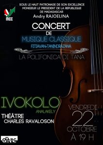 📌Musique classique. La Polifonica di Tana donnera un concert intitulé « Fitiavan-tanindrazana » au Théâtre Charles Ravalison du Centre culturel Ivokolo à Analakely ce vendredi 22 Octobre à 19h.