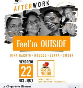 📌After work. « Feel’in outside » sera le thème abordé par Dina Rakoto, Doudou, Clara, et Omega pour une ambiance récréative et conviviale au Cinquième Élément à Antsakaviro ce vendredi à 19h.
