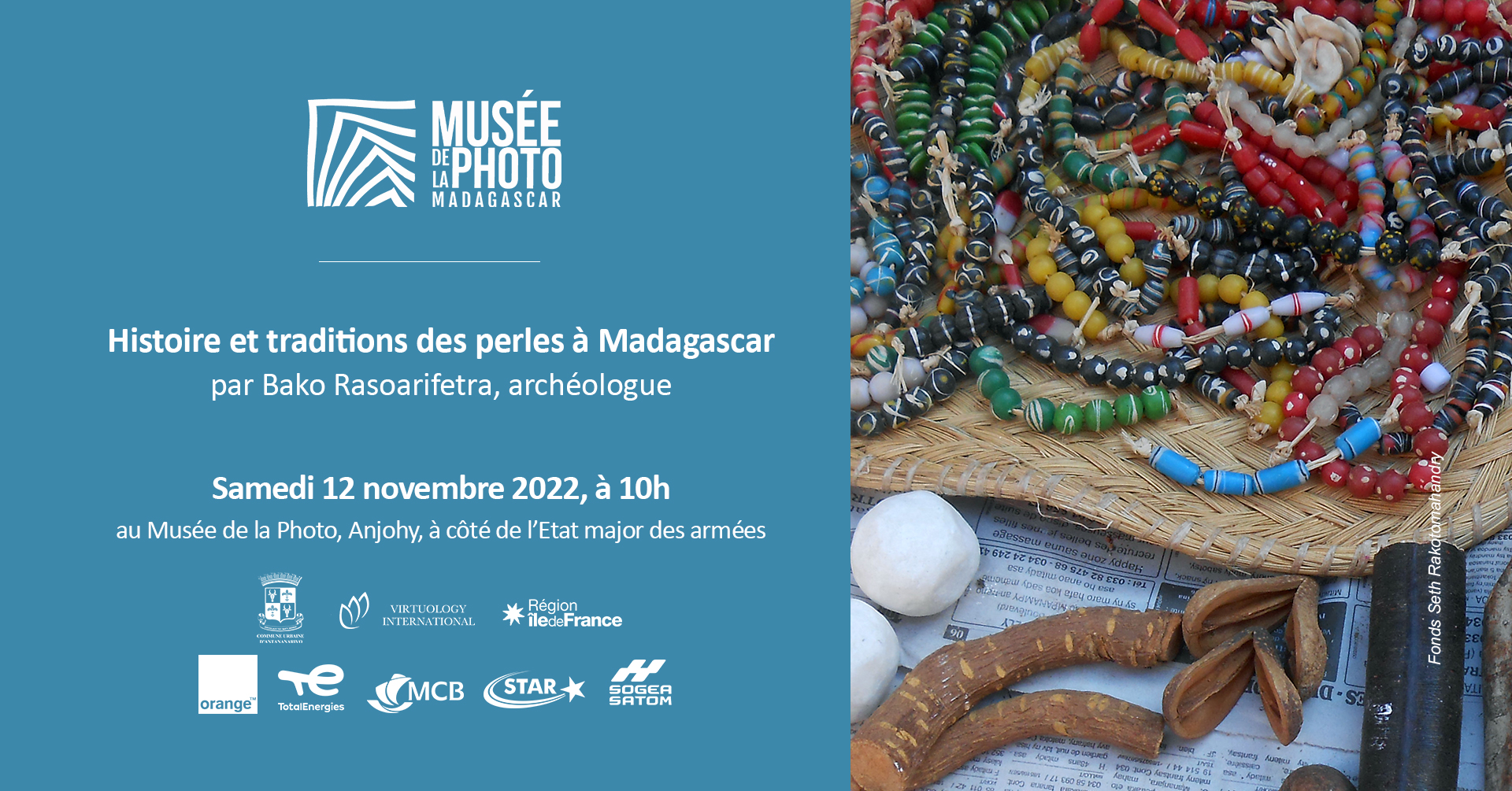 ⭕Conférence. L’archéologue Bako Rasoarifetra communiquera sur l’histoire et traditions des perles à Madagascar, le samedi 12 Novembre à 10h au Musée de la Photo à Anjohy.