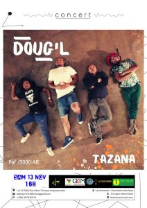📌Musique urbaine. Dougl fait partie de cette nouvelle génération d’artistes qui prône la paix et la résistance. Allant du reggae au ragga en passant par le beat hip hop, Dougl veut nous emmener dans un voyage où conscience et lâcher-prise vont de paire dans « Tazana », son concert du samedi 13 novembre à 19h30 à La Teinturerie à Ampasanimalo.