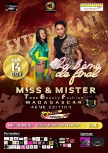 📌Beauté. La huitième de finale du concours de Miss et Mister « Teen Beauty Fashion Madagascar » quatrième édition, se déroulera au Jao’s Pub à Ambohipo le dimanche 14 Novembre à 14h.