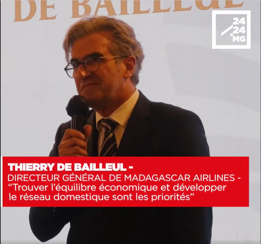 Thierry de Bailleul a été choisi par les autorités malgaches pour être le nouveau directeur général de Madagascar Airlines, la société qui a exploite les actifs d’Air Madagascar. Il a été officiellement présenté ce mercredi à Iavoloha lors de la signature de l’acquisition par Madagascar Airlines de l’avion Embraer 190 E2 pour étoffer sa flotte. Devant les caméras de 2424.mg, le nouveau DG, ambitieux et confiant, livre sa vision et ses priorités pour le redressement de la compagnie aérienne nationale. Interview.