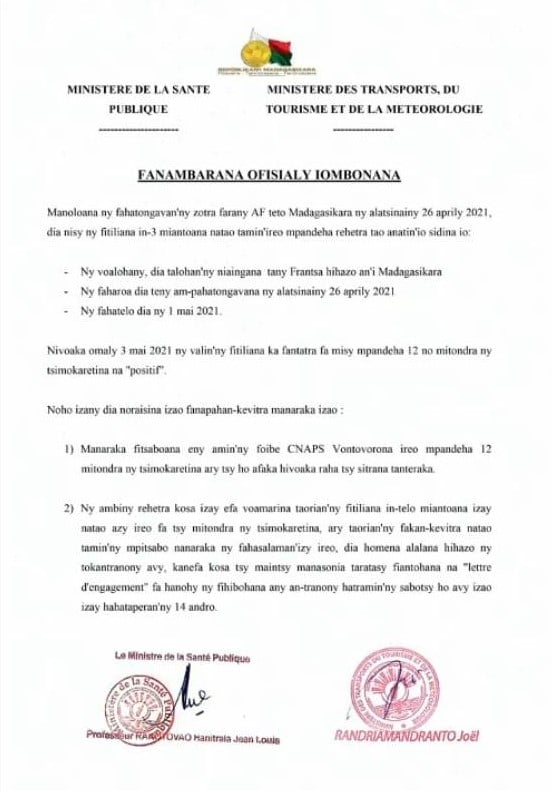 TRANSPORT AERIEN – 12 passagers du vol Air France envoyés à Vontovorona pour suivre un traitement anti-Covid, les autres passagers invités à s’auto-confiner jusqu’à samedi