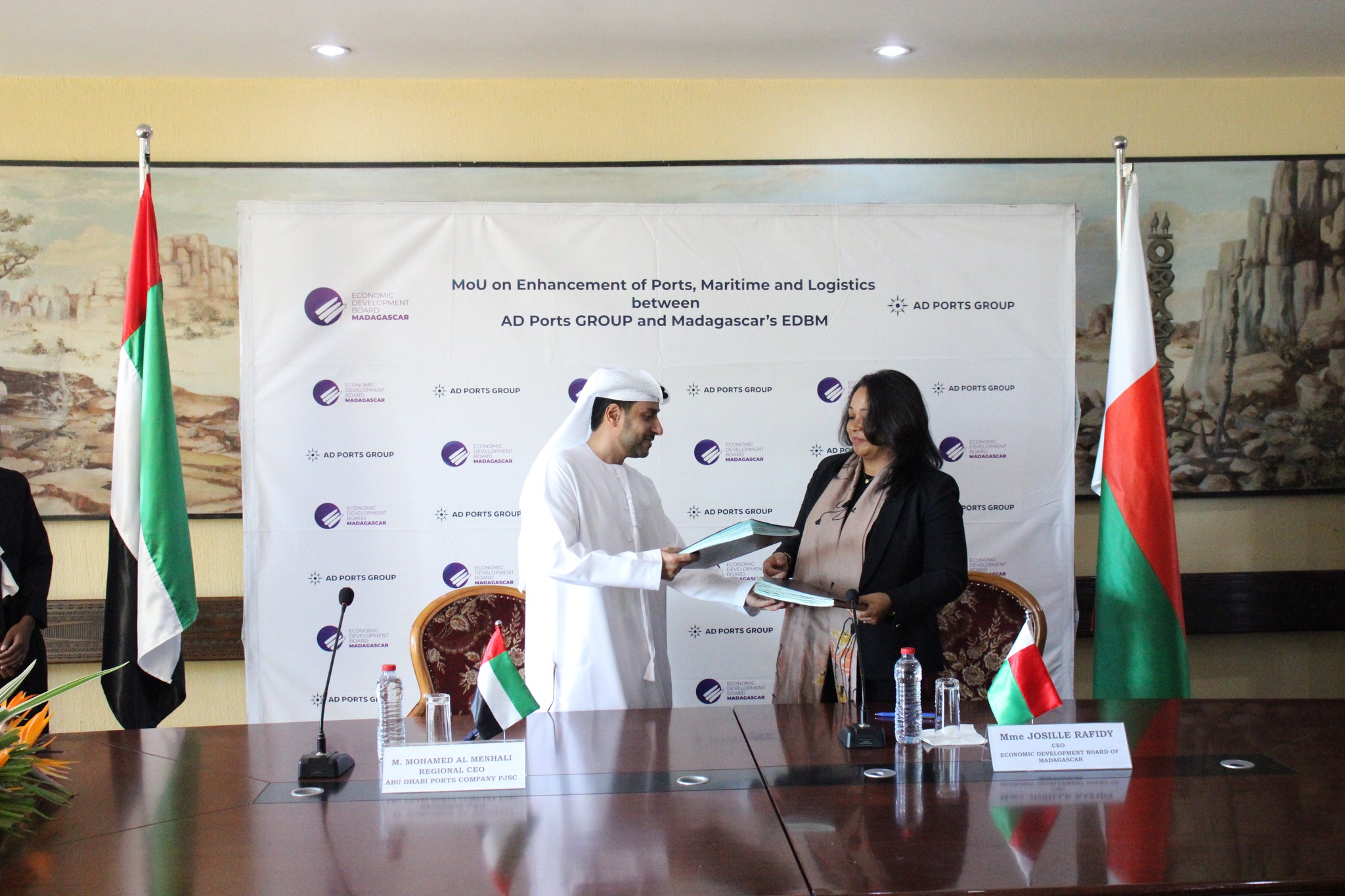 Antananarivo, 31 Mai, 17h05 – Le monde maritime bénéficie du rapprochement entre Madagascar et les Emirats Arabes Unis. Un mémorandum d’entente a été signé entre Abu Dhabi Ports Group et l’Economic Development Board of Madagascar dans le but de développer le transport maritime à Madagascar jeudi. La signature a été réalisée dans les bureaux du ministère des Affaires étrangères en présence de la ministre Rafaravavitafika Rasata et de Valery Ramonjavelo, ministre des Transports et de la météorologie.