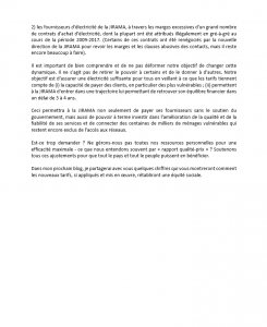 2) les fournisseurs d’électricité de la JIRAMA, à travers les marges excessives d’un grand nombre de contrats d’achat d’électricité, dont la plupart ont été attribués illégalement en gré-à-gré au cours de la période 2009-2017. (Certains de ces contrats ont été renégociés par la nouvelle direction de la JIRAMA pour revoir les marges et les clauses abusives des contacts, mais il reste encore beaucoup à faire).