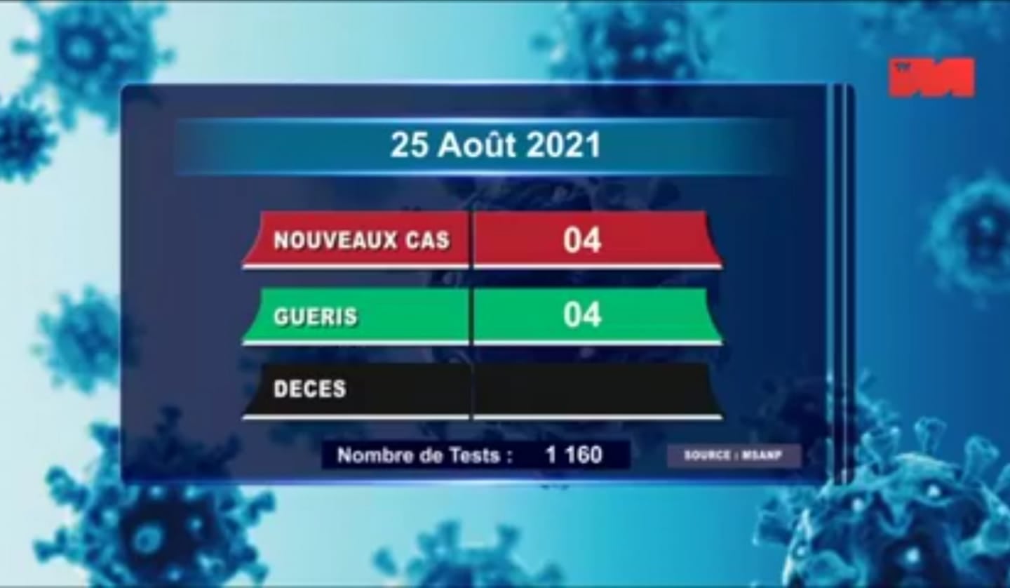 Aucun décès dû au coronavirus, à la date du 25 Août, selon le rapport publié sur la chaîne de télévision publique ce jeudi 26 Août 2021,
