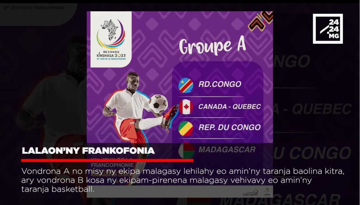 – LALAON’NY FRANKOFONIA : Vondrona A no misy ny ekipa malagasy lehilahy eo amin’ny taranja baolina kitra, ary vondrona B kosa ny ekipam-pirenena malagasy vehivavy eo amin’ny taranja basketball.